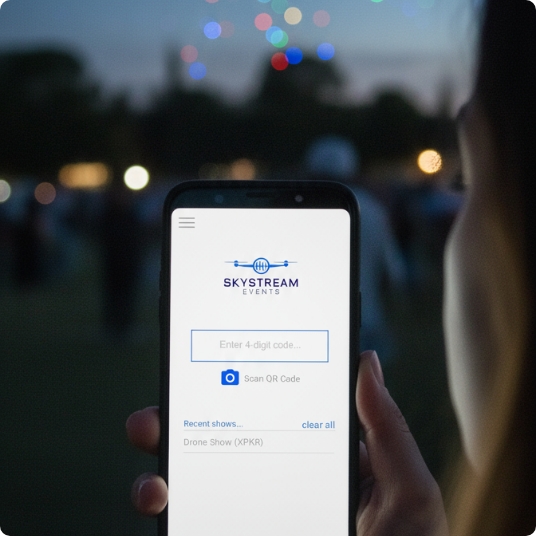 Mit SkyStream können Sie den Ton von Drohnenshows direkt von Ihrem Telefon aus anhören.